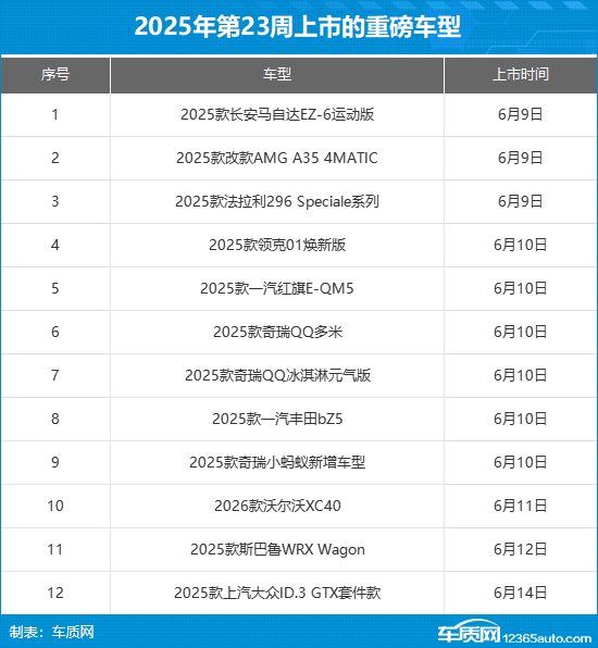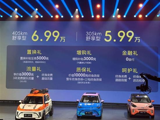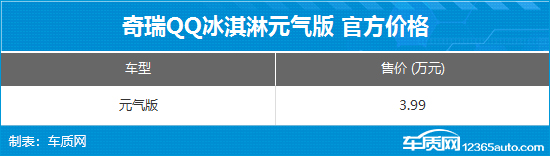6月10日,奇瑞QQ冰淇淋元气版正式上市。新车为增配车型,定位为三门四座纯电微型车,可实现快充,并提供整车和三电终身质保。此次上市新车共推出1款车型,售价为3.99万元。