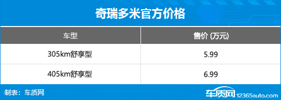 6月10日,在奇瑞小车潮改节上,奇瑞多米正式上市,此次共推出2款车型,售价区间为5.99-6.99万元。新车定位5万级的“纯电MINI SUV”,CLTC纯电续航里程提供305km和405km两种选择。