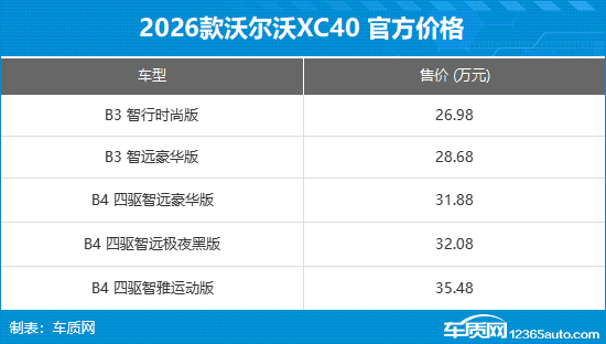 6月11日,2026款沃尔沃XC40正式上市,新车推出5款车型,售价区间26.98-35.48万元。作为年度改款车型,其主要调整了部分配置,其他变化不大。
