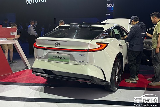外观方面,丰田bZ5采用了丰田最新的设计,前脸配备贯穿式LED灯带,并且两侧日行灯为“C”字形,点亮后极具辨识度。前包围下方配备了大尺寸熏黑进气口,两侧还拥有纤细的导流槽设计,进一步提升了前脸的运动感。