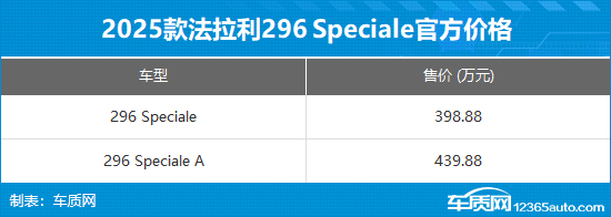 车质网从法拉利官方获悉,2025款法拉利296 Speciale系列车型正式在国内上市,共推出296 Speciale、296 Speciale A两款车型,售价分别为398.88万元、439.88万元。