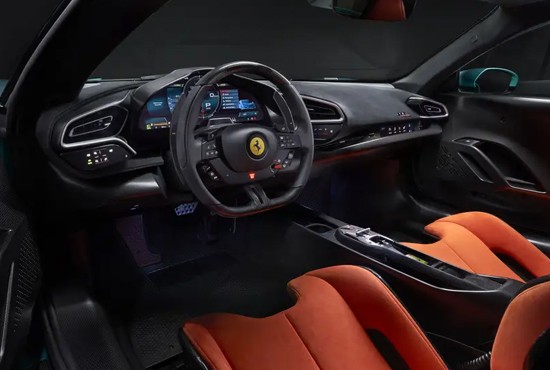 内饰方面,以296 Speciale为例,整体氛围极具战斗感。三辐赛车方向盘、赛道座椅均未缺席,并且融入了大量翻毛皮材质,副驾驶位前方还设有一块小尺寸屏幕。