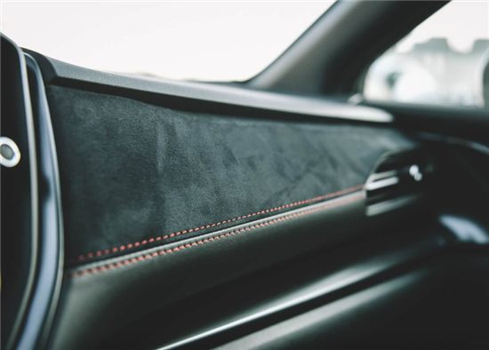 内饰方面,新车采用“赤焰黑”专属配色,搭配红色缝线、黑色麂皮座椅及黑色烫印工艺装饰件,营造强烈的运动气场。10.1英寸数字仪表与14.6英寸悬浮式中控屏,内置高通骁龙8155芯片,支持智能互联功能。